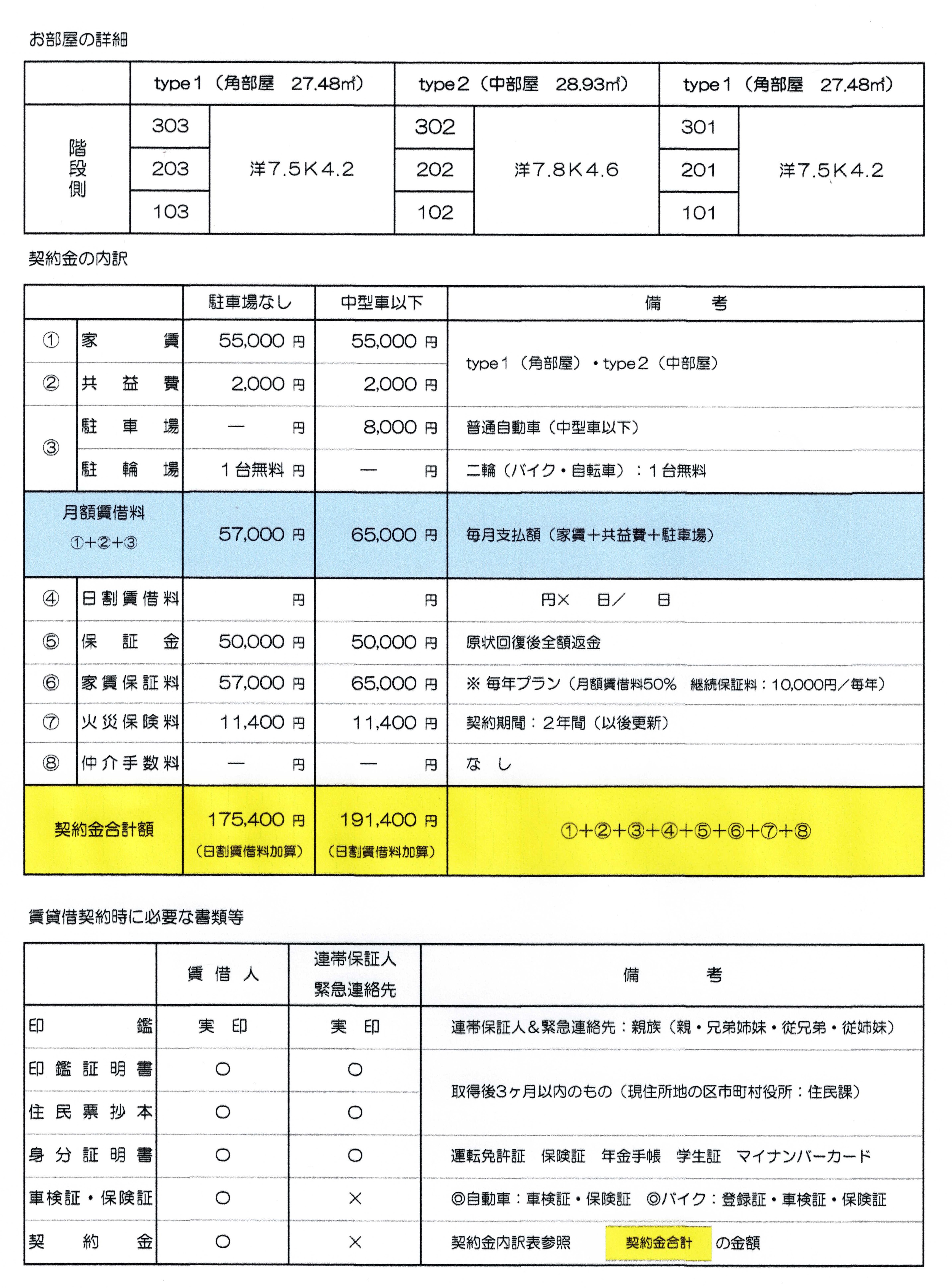 ※ 月額賃借料&契約金 = 駐車料金で異なります。