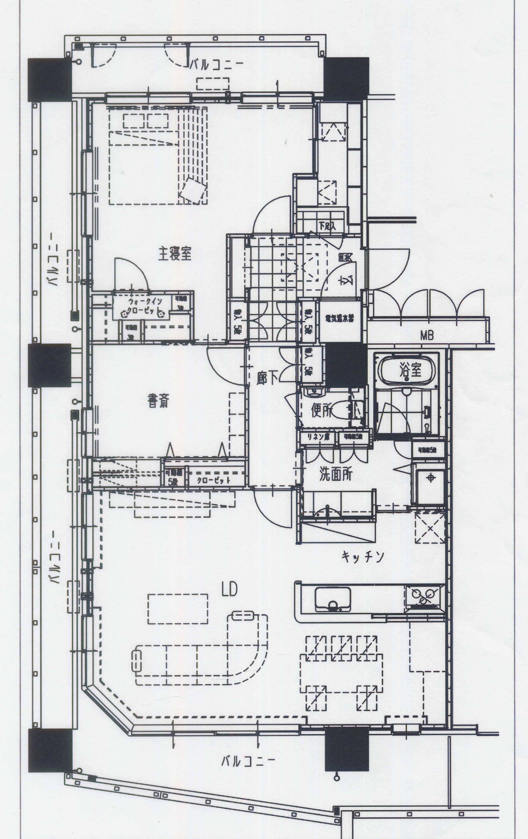 ★3面バルコニー(リビング2面・寝室2面・書斎1面)