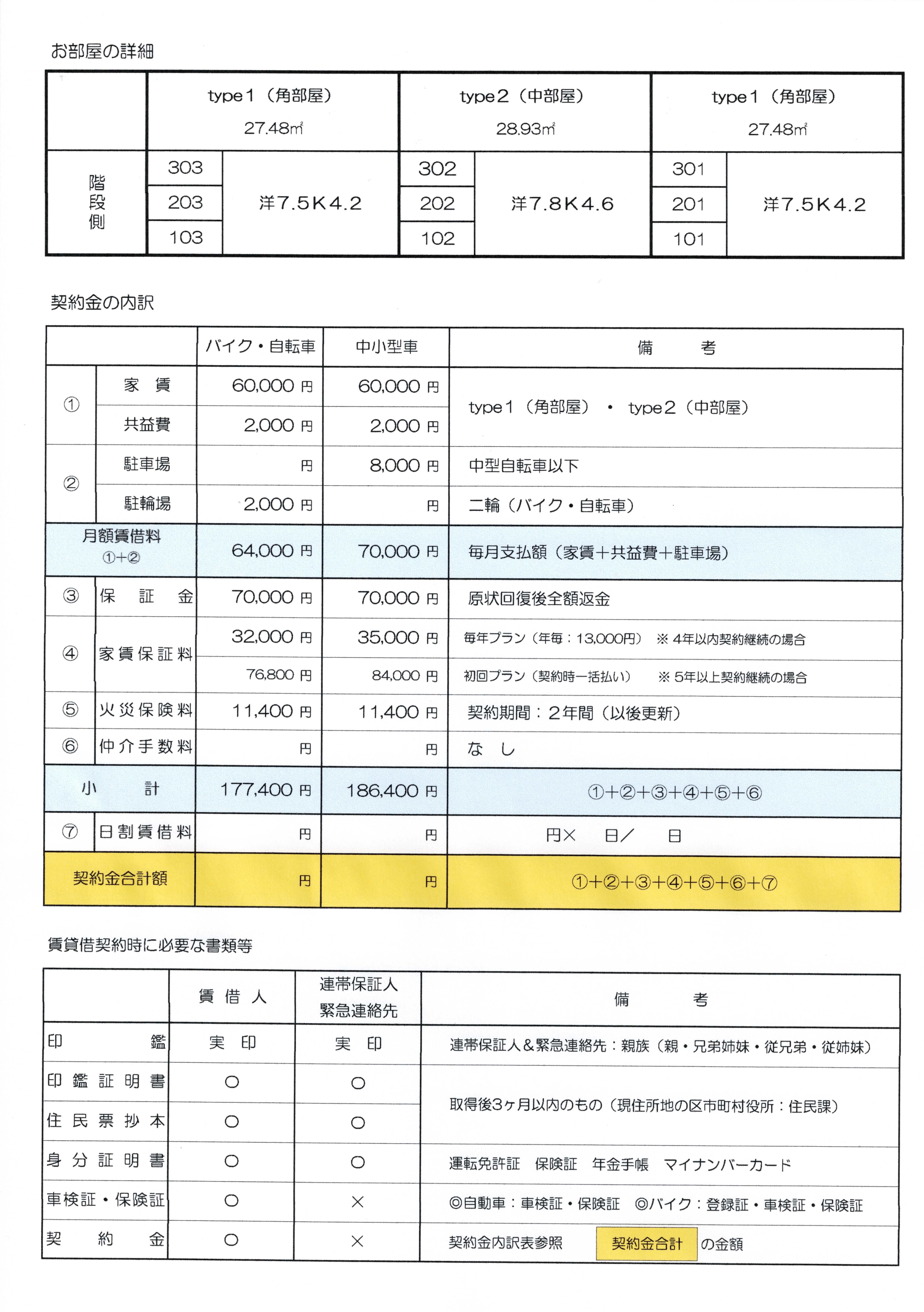 ※ 月額賃借料&契約金 : 駐車(輪)料金で異なります。